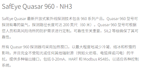 SPECTREX 有毒气体探测器Quasar960 -NH3